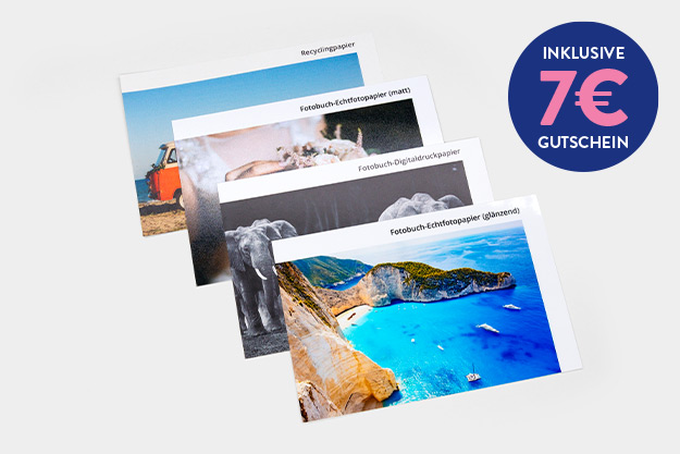 Das Muster-Set enthält alle verfügbaren Papiersorten auf echten Druckmustern. Wähle selbst, welches Material am besten zu deinem Stil und deinen Bildmotiven passt.