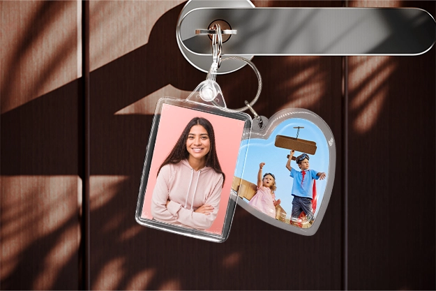 Kreiere deinen einzigartigen Foto-Schlüsselanhängern aus Acrylglas und wähle dein Lieblingsformat: herzförmig in 5 × 5 cm oder praktisch rechteckig mit 5 × 4 cm. Das robuste Material schützt dein Lieblingsfoto und lässt die Farben kräftig strahlen. Selbst nach wochenlanger Nutzung am Schlüsselbund bleibt die Bildqualität unverändert gut erhalten.