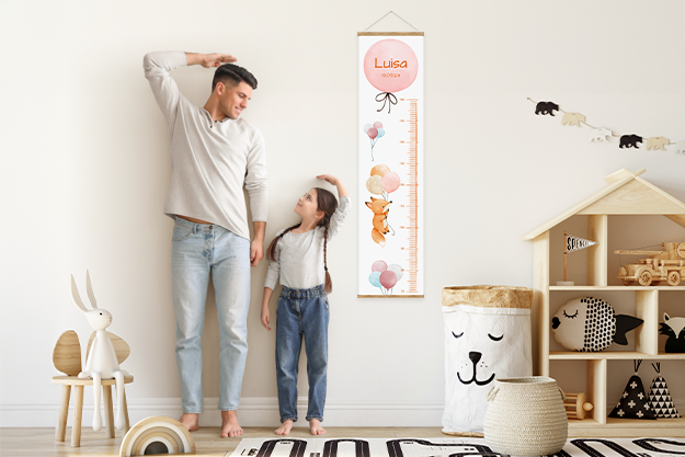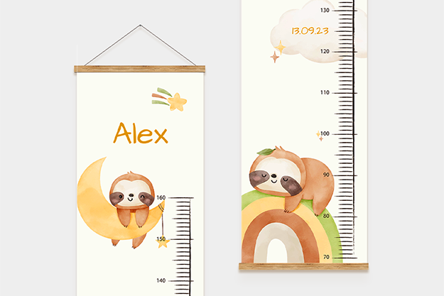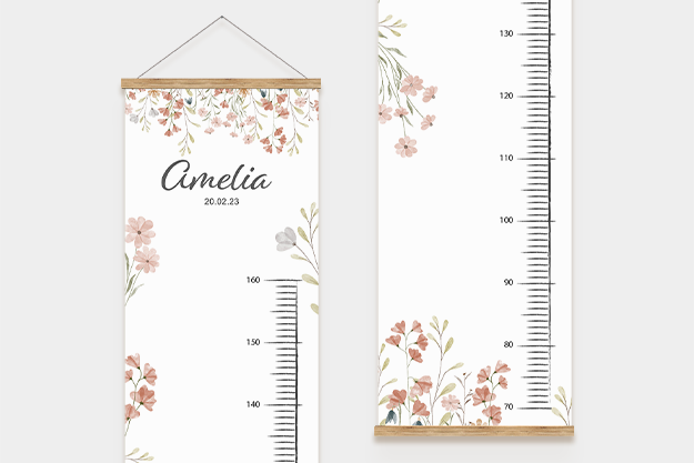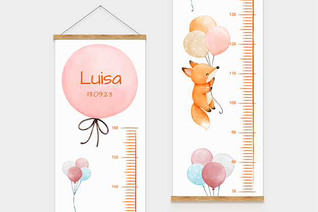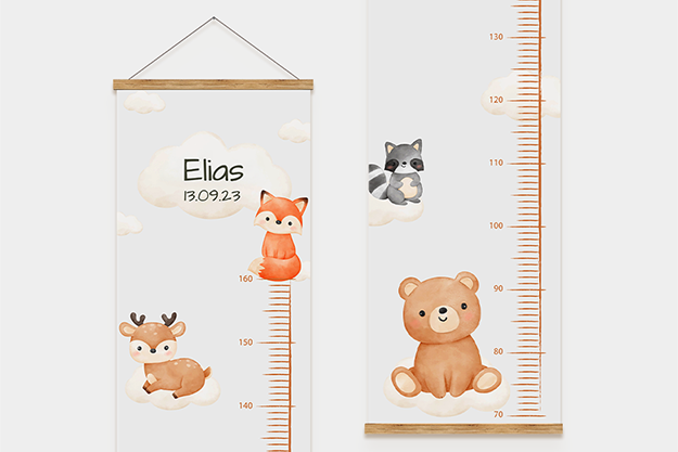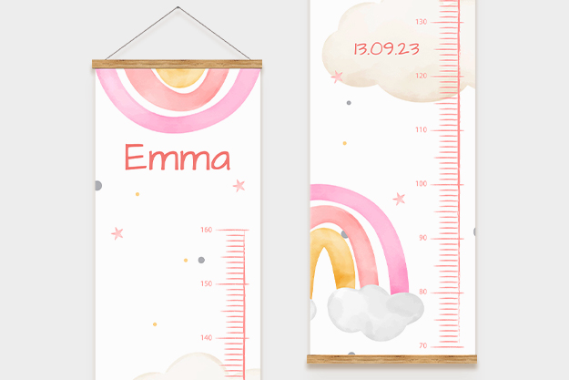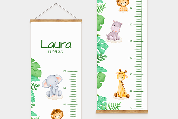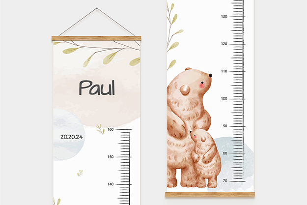 Die personalisierte Kindermessleiste ist mehr als nur ein praktisches Messinstrument – sie ist eine liebevolle Erinnerung an das Wachstum deines Kindes. Mit der Möglichkeit, den Namen und das Geburtsdatum deines kleinen Lieblings hinzuzufügen, kannst du die wichtigen Momente seiner Entwicklung für immer festhalten. Wähle aus neun zauberhaften Designs, die perfekt zum Kinderzimmer passen und jedes Wachstum mit einem Lächeln begleiten.