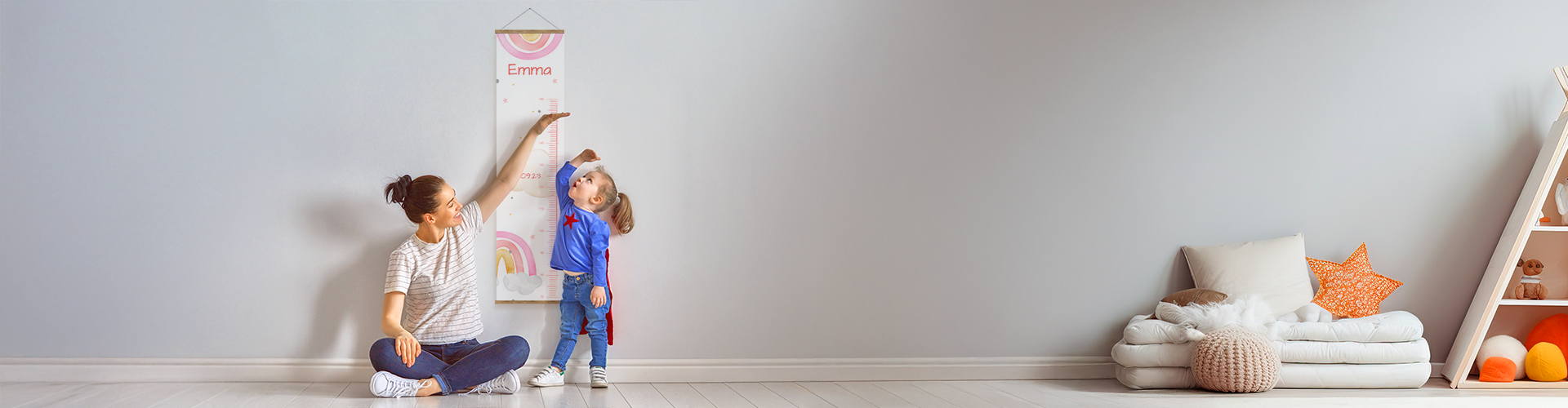 Unsere Messlatte ist aus hochwertigem Leinenstoff gefertigt und wird mit nachhaltigen Kiefernholzleisten versehen. Diese Kombination sorgt nicht nur für eine edle Optik, sondern auch für eine besonders langlebige und umweltfreundliche Erinnerung. Die Messlatte fügt sich harmonisch in jedes Kinderzimmer ein und wird durch ihre natürlichen Materialien zu einem zeitlosen Highlight.