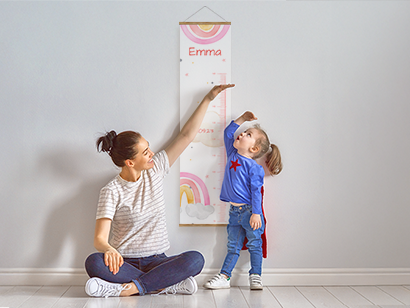 Kinder wachsen in beeindruckendem Tempo, und mit unserer personalisierten Kindermessleiste kannst du diesen aufregenden Prozess genau verfolgen. Mit einem Messbereich von 70 bis 160 cm bietet die Messlatte genügend Platz, um jedes Wachstum festzuhalten. So wird aus jeder Markierung an der Wand eine Erinnerung an einen weiteren großen Schritt in der Reise deines Kindes.