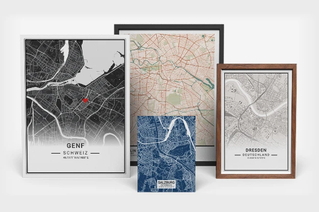Designe deine personalisierte, einzigartige Karte von jeder Stadt der Welt.