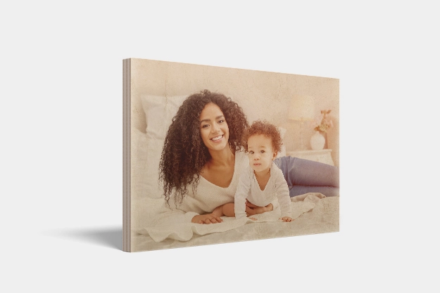 Dein Bild als Leinwand, eingefasst in rustikalen Leisten aus echtem Kiefernholz.