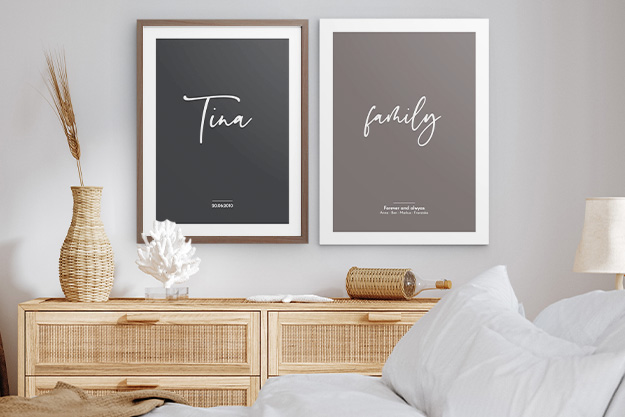 Die Gestaltung deines persönlichen Designposters gelingt schnell und intuitiv: Wähle dein Wunschformat, passe Text und Layout an und entscheide dich optional für einen Rahmen deiner Wahl. Damit das Ergebnis genau deinen Vorstellungen entspricht, siehst du mit der Vorschaufunktion direkt, wie dein Designposter später wirkt.